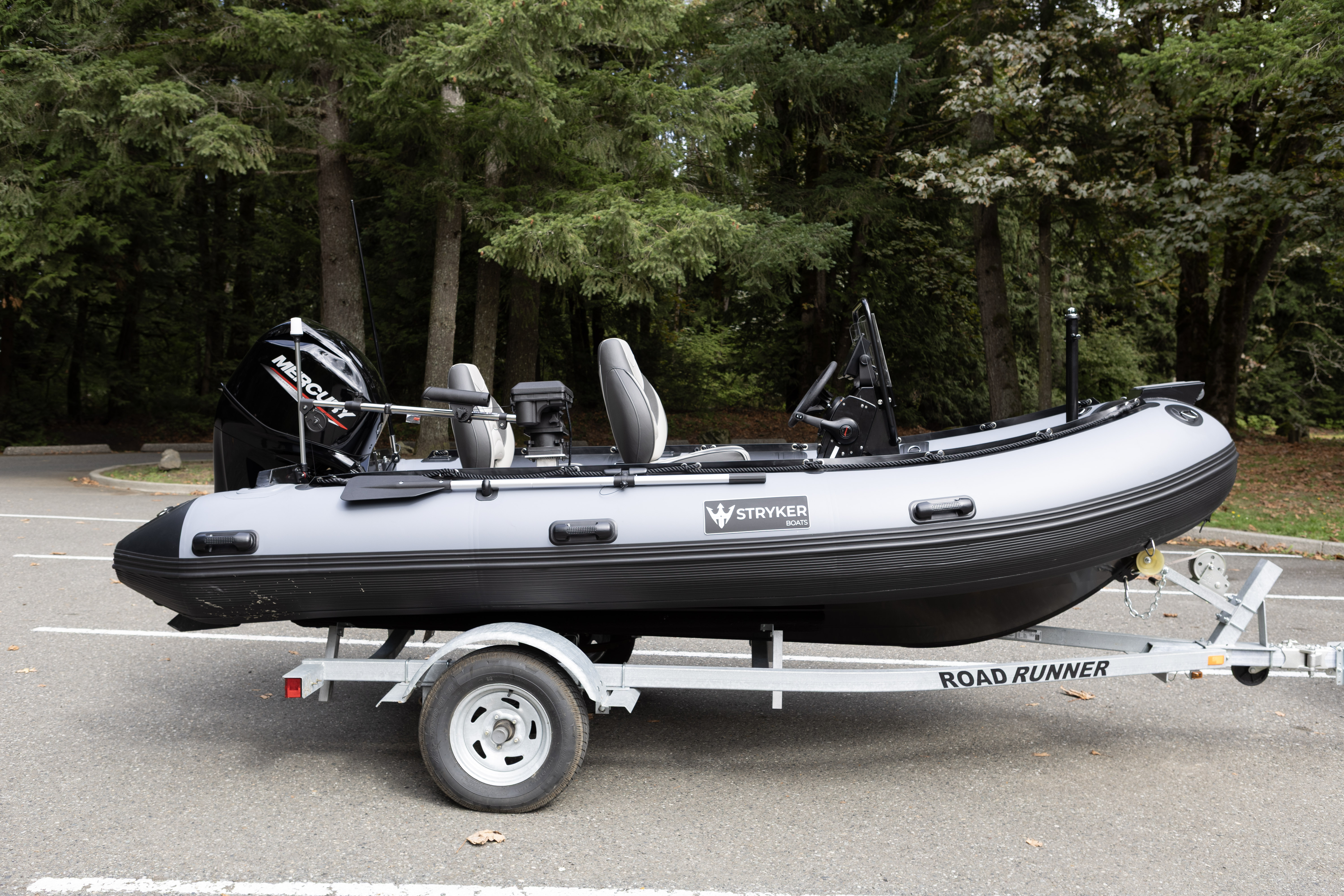This custom RIB 420 is built for durability, performance, and fishability. Powered by a Mercury 60ELPT and featuring a flat deck, welded V-hull, centre console, and full fishing setup, it’s ready for everything from shallow water runs to long days on the water. This model isn’t for sale, but it’s a great example of how you can build a Stryker to suit your needs.