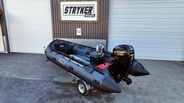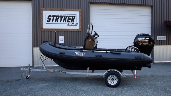 This custom RIB 450 is built for shallow water performance and durability. Powered by a Mercury Jet 80 ELPT and featuring a flat deck, welded V-hull, standing centre console, and full protection package including UHMW, it’s ready for rugged conditions and backcountry use. This model isn’t for sale, but it’s a great example of how you can build a Stryker to suit your needs.